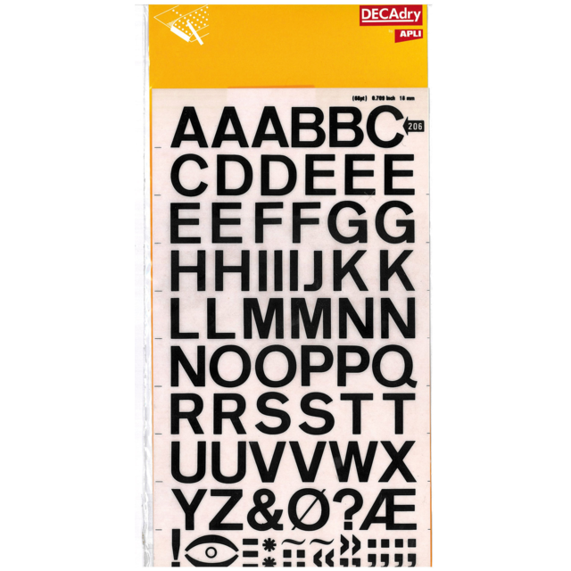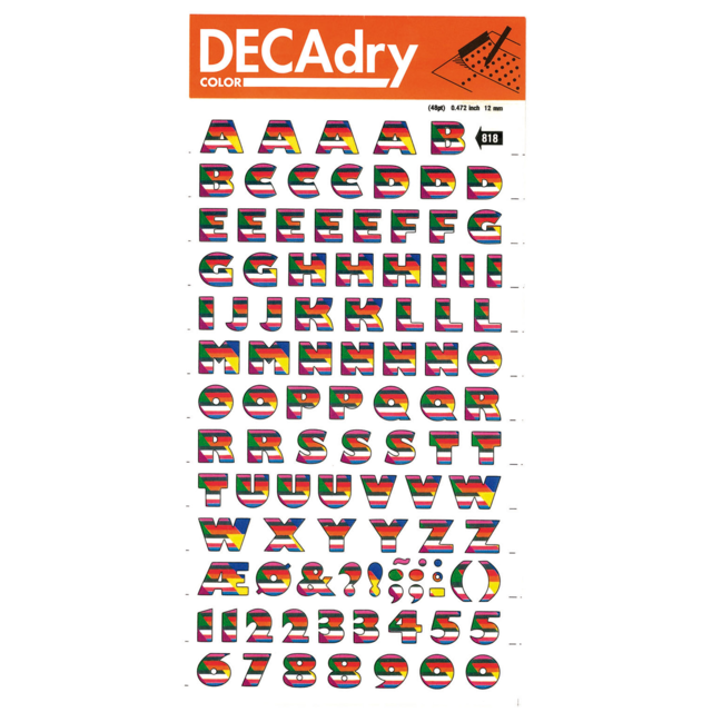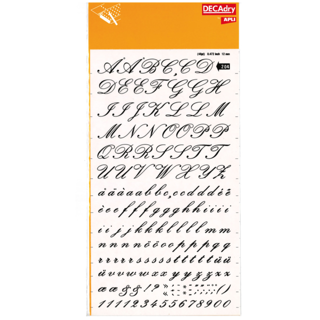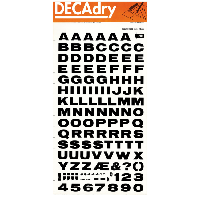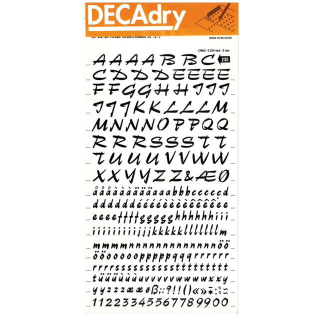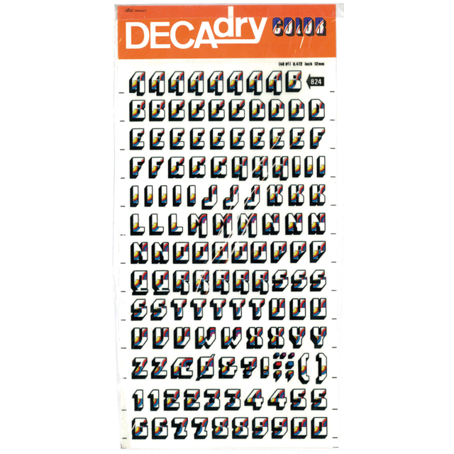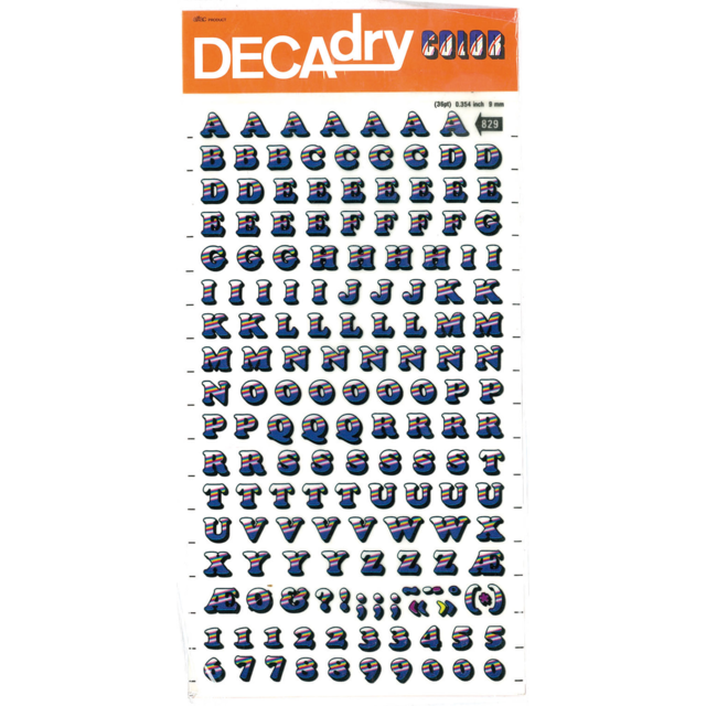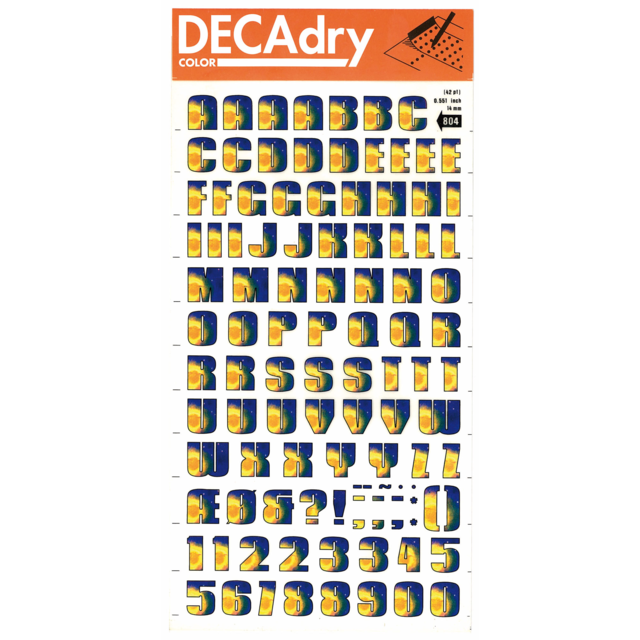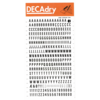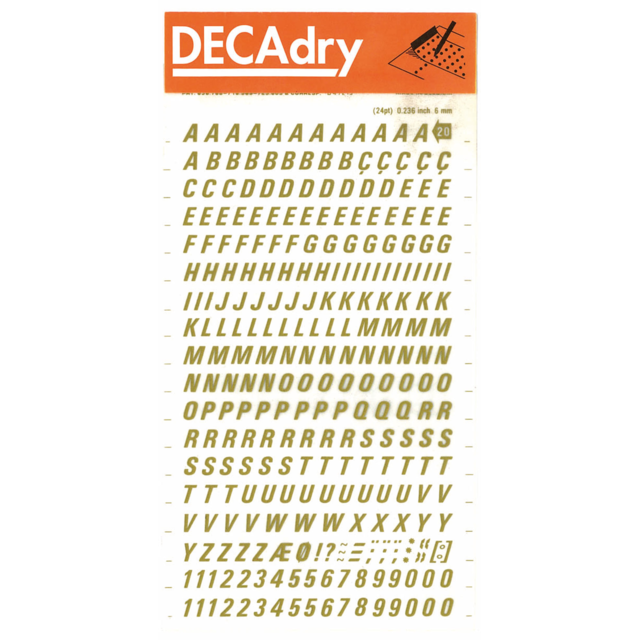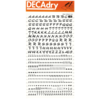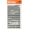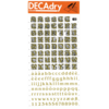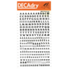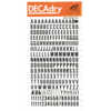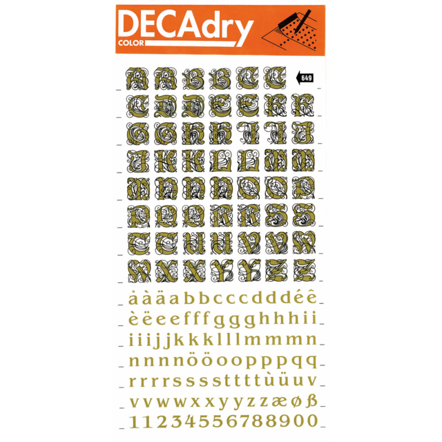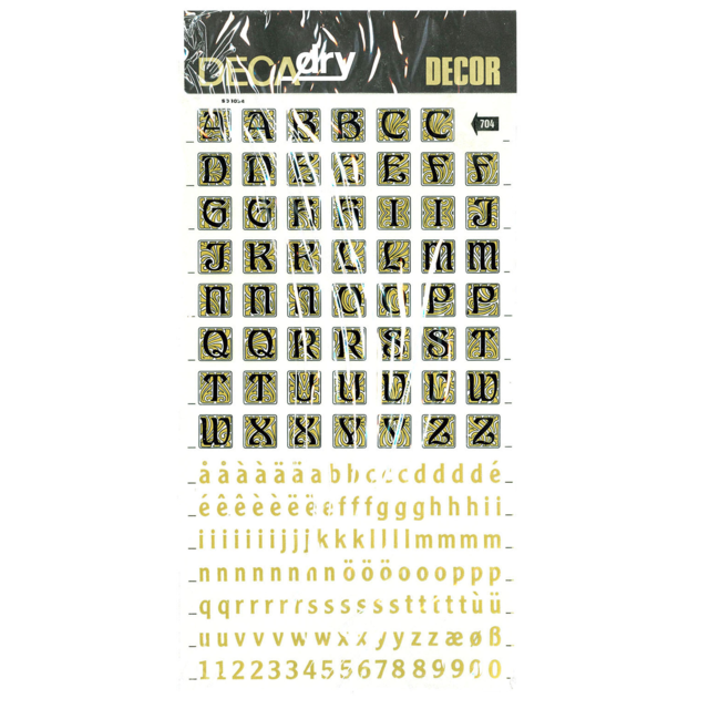 *DECADRY DECOR #704 ALPHA+NUMS. This set contains black upper and lower case alphabet and numerals on gold background. |