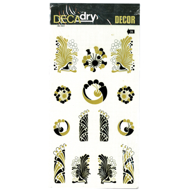 *DECADRY DECOR #711 ART DECO. This set contains Art Deco scroll motifs in gold and black. |