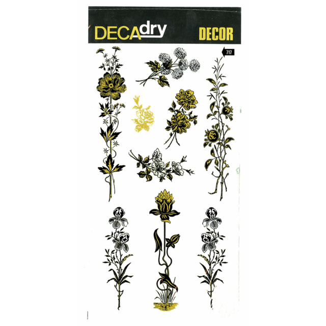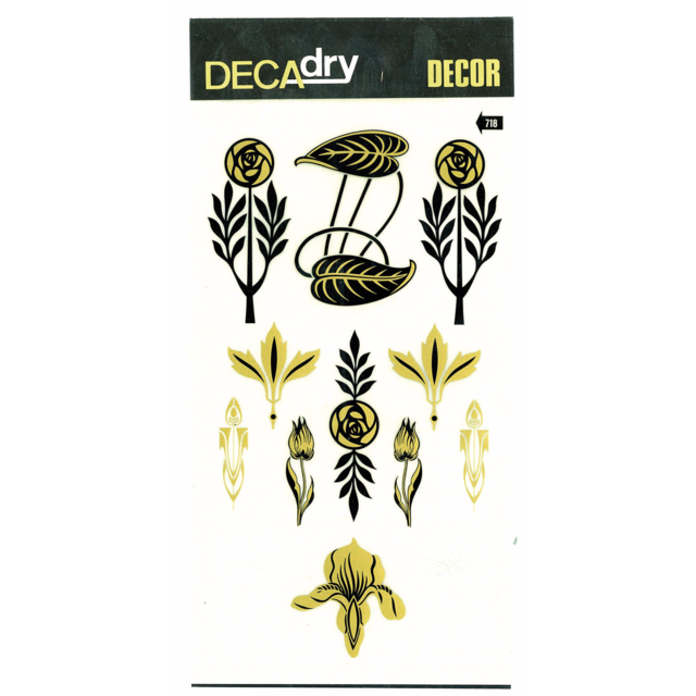 *DECADRY DECOR #718 FLORAL. This set contains floral motifs in gold and black. |