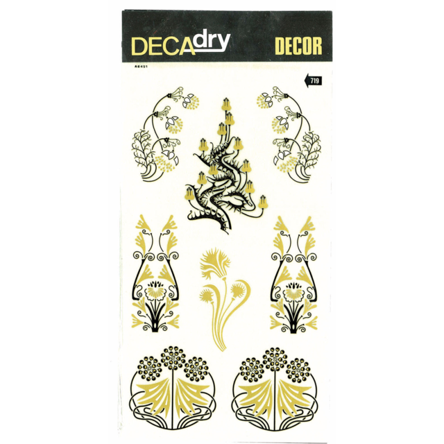 *DECADRY DECOR #719 FLORAL. This set contains floral motifs in gold and black. |