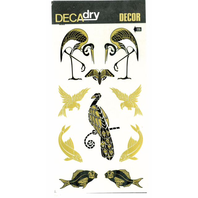 *DECADRY DECOR #720 BIRD FISH. This set contains birds and fish in gold and black. |