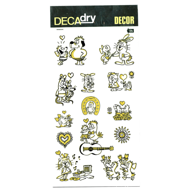 *DECADRY DECOR #724 CARTOONS. This set contains 'love' cartoon characters and shapes in gold and black. |