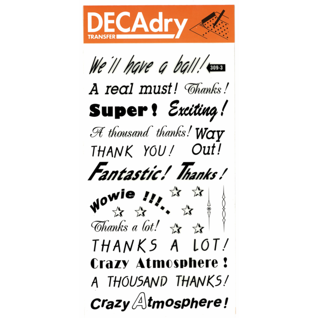 *DECADRY TRANSFER #309 SAYINGS.Contains various thank you's in black. |