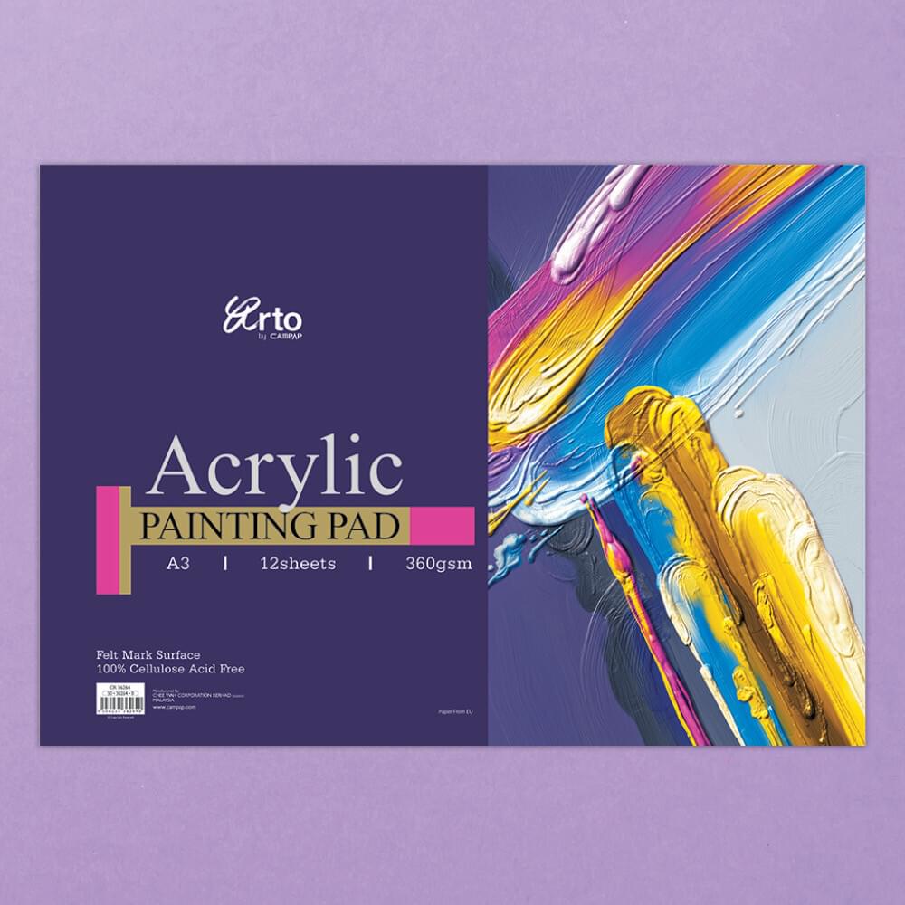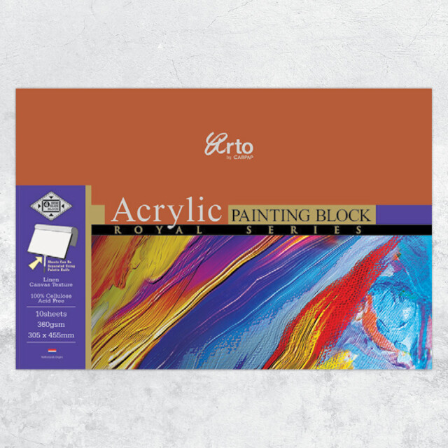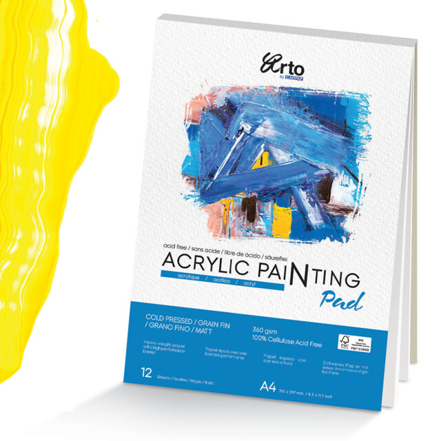This heavyweight paper is manufactured from 100% acid-free cellulose fibres and features high-performance surface sizing making it suitable for use with both flow and heavy-body acrylic paint colours. Arto Acrylic painting paper is FSC (Forest Stewardship Council) certified, produced from forests responsibly managed with respect to environmental, social and economic standards.