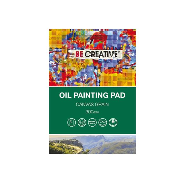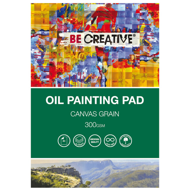 Be Creative Oil Painting Pads feature an Italian-milled, heavyweight 300gsm paper with internal and external sizing that offers ideal absorption for all oil colours. The paper is acid-free and archival safe. The unique surface of the paper is created through a specialised texturing process to produce a surface similar to that of linen canvas and is therefore highly recommended for oil painting techniques.