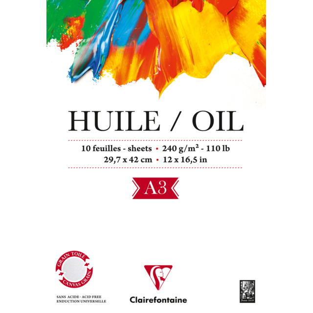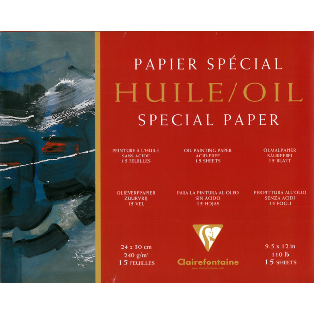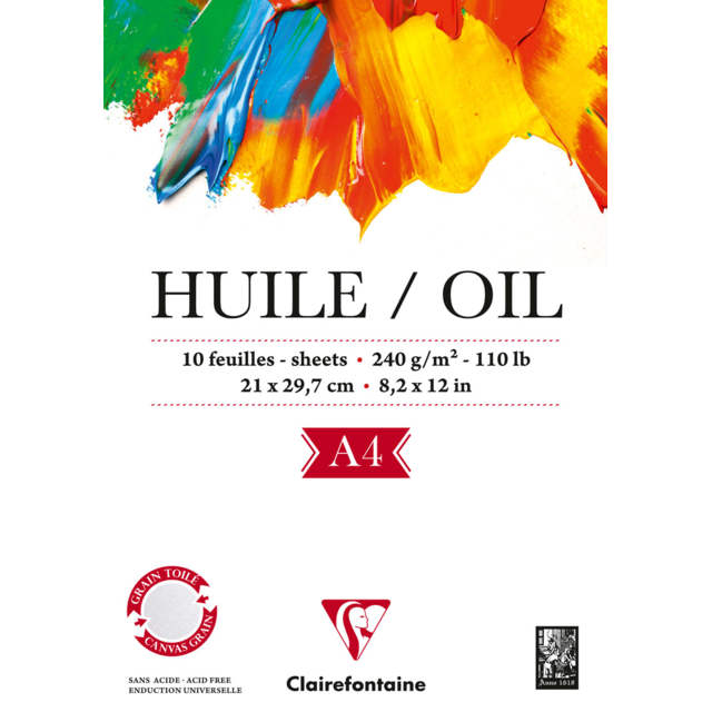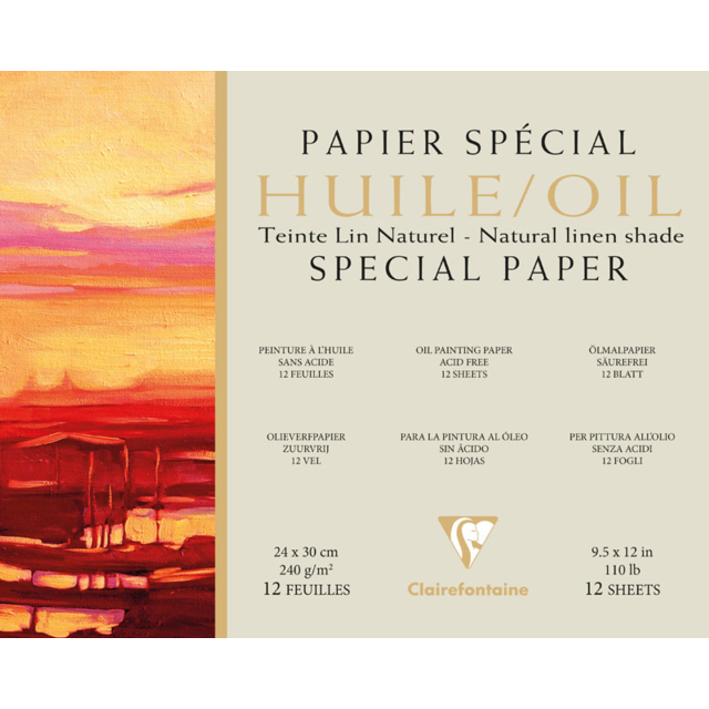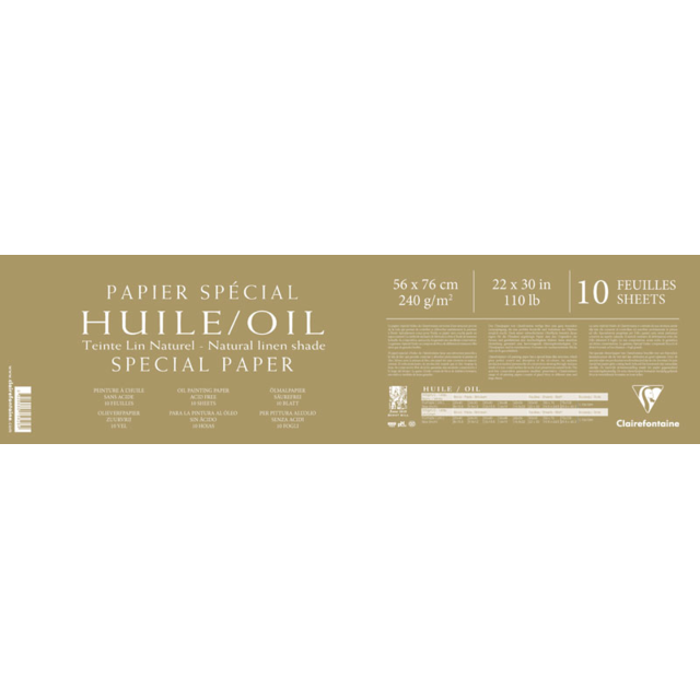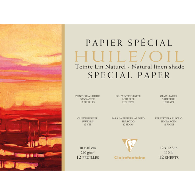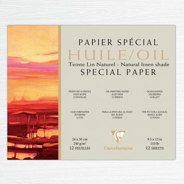 This surface of this paper has been specially treated to prevent oils and solvents soaking through. The linen-style grain of the paper imitates the appearance of canvas and allows colours to be re-worked while drying. Ready to use and recommended for study or outdoor painting, this paper is available in a white or warm shade of natural linen exclusive to Clairefontaine. 240gsm, acid free and pH neutral.