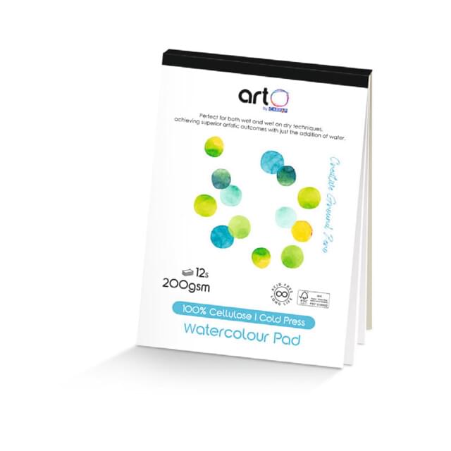 Arto 100% Cellulose Watercolour Paper: Acid free, natural white, 100% cellulose, European- milled watercolour paper with classic felt finish. . This watercolour paper is manufactured using the purest 100% cellulose fibre, giving it exceptional properties that include high resistance to ageing, colour fastness and pH neutrality. It has a medium fine texture and a high wet strength, providing the user with nice flow and accurate colour reproduction. Suitable for the most demanding artistic requirements of students and beginning artists.
