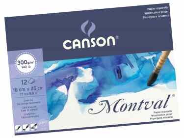 MV30012A5 MV30012A5 CANSON MONTVAL 300gsm CP WATERCOLOUR PAPER A5 PAD. Contains 12 sheets of 300gsm Cold Pressed cellulose watercolour paper. In stock Login For Price