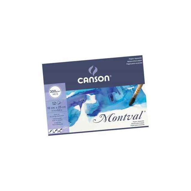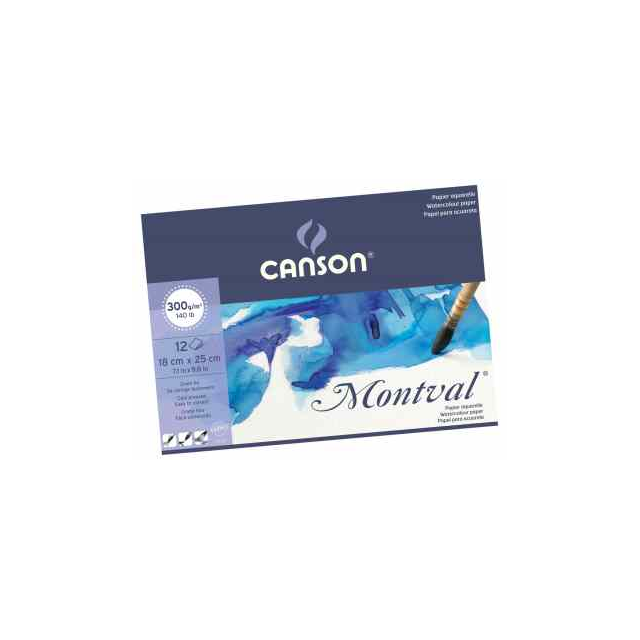 MV30012A3 MV30012A3 CANSON MONTVAL 300gsm CP WATERCOLOUR PAPER A3 PAD. Contains 12 sheets of 300gsm Cold Pressed cellulose watercolour paper. In stock Login For Price