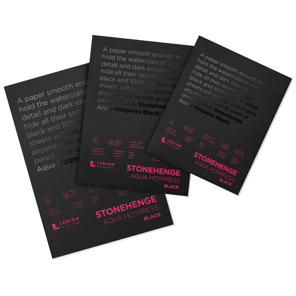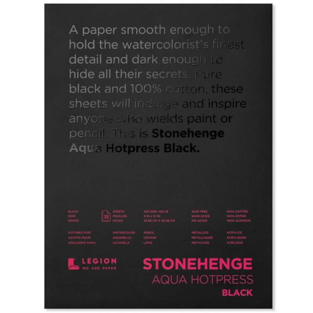 STONEHENGE AQUA BLACK HOT PRESS WATERCOLOUR PAPER 300gsm 229x305mm (9x12 inch) PAD 15 SHEETS |