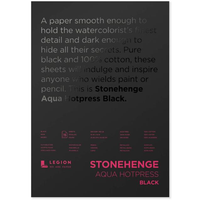STONEHENGE AQUA BLACK HOT PRESS WATERCOLOUR PAPER 300gsm 254x356mm (10x14 inch) PAD 15 SHEETS |