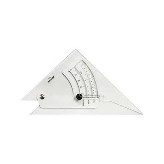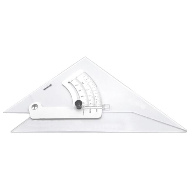 *ADJUSTABLE SET SQUARE 25cm. Acrylic adjustable Set Square with bevelled and inking edge. Measurements in degrees, slope and rise. |