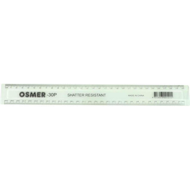 CLEAR PLASTIC RULER 30cm. Manufactured from clear, shatter-resistant plastic with metric graduations available in 30cm length.