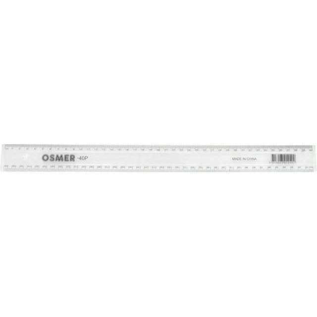 CLEAR PLASTIC RULER 40cm. Clear plastic with metric graduations available in 40cm length.