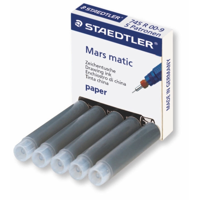ST745R009 ST745R009 *STAEDTLER MARS-MATIC DRAWING INK CARTRIDGES Pack of 5. This jet black ink produces well defined lines and contains an anti-clogging additive. Please note item with descriptions pre-fixed # are special order products and generally available within a few days following receipt of your order. In stock Login For Price