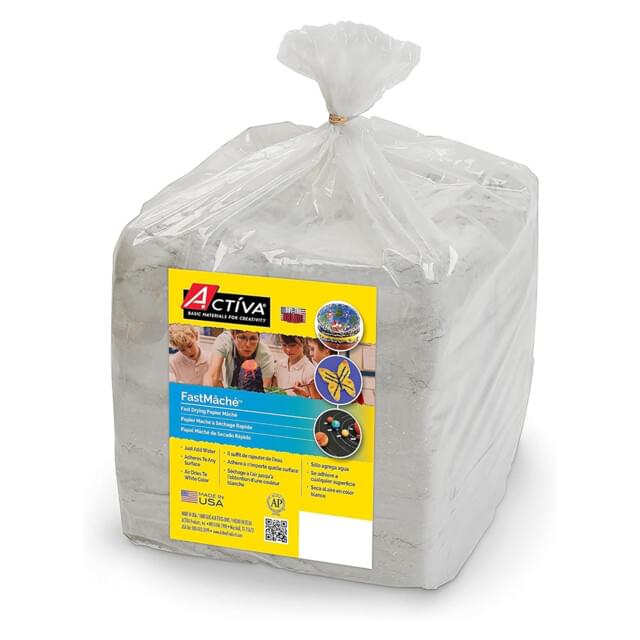 FastMâché is a fast-drying Paper Mache. It has a unique formula, which allows it to dry more quickly than typical Paper Mache products. It is 100% safe and non-toxic. It has a heavier and tougher finish than standard Paper Mache so is ideally suited for 3-D work.