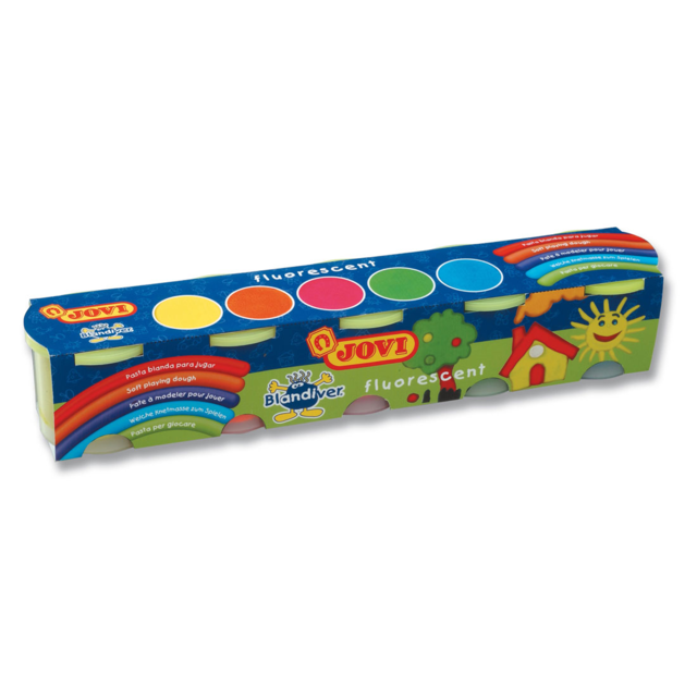 JV00405F JV00405F *JOVI SOFT (PLAY)DOUGH FLUORESCENT COLOURS SET OF 5. Contains one 110gm block each in fluorescent yellow, orange, red, green and blue. In stock Login For Price