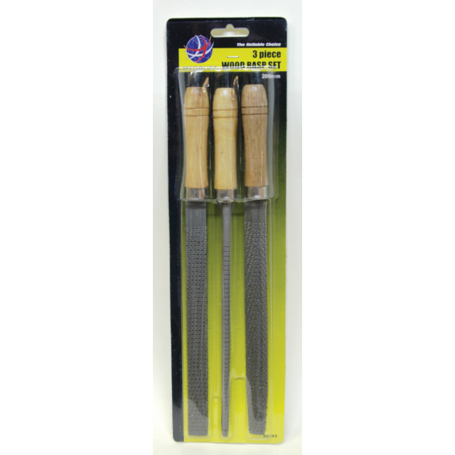 SOAPSTONE & WOOD WORKING RASP SET OF 3. For internal shaping of soapstone and other carving materials. Comprises one each 200mm of round, half-round and flat styles with moulded plastic handles. |