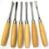 Skew chisel, 'V' Groove chisel, Straight chisel, Bent Gouge chisel, Straight Gouge chisel and Bent chisel |