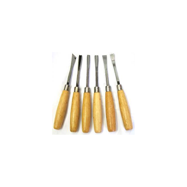 SOAPSTONE & WOOD CARVING 6 PIECE CHISEL SET. Ideal for carving featuring heat treated blades. Includes one chisel type each of: