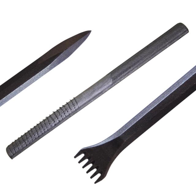SOAPSTONE 15cm x 6 Pc.CHISEL SET. Contains chisels suitable for shaping stones that measure up to hardness 2 on the Mohs hardness scale. They are especially suitable for greasy type stone such as soapstone but work well on drier type stones such as Serpentine, Marble and Alabaster. Chisels measure 150mm. |