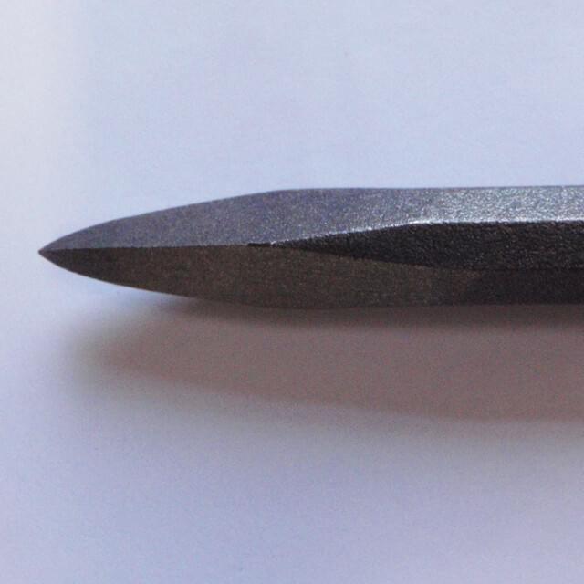 *STONE CARVING POINTED CHISEL. Handmade chisel for precision carving of serpentine and soapstone. Single pointed style chisel that features a tapered 30mm long point. |