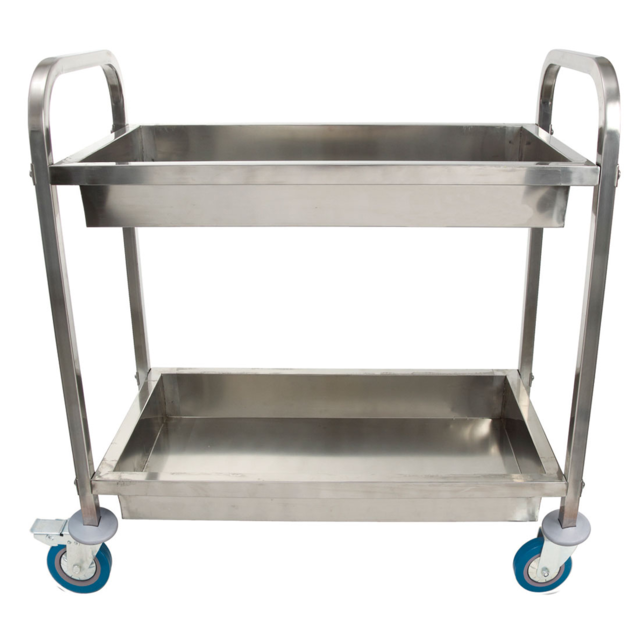SCHOOL ART/CRAFT STORAGE TROLLEY. Lightweight trolley manufactured from stainless steel. Easy to manoeuvre, it features two stainless steel trays and frames, heavy duty castors with wheel brakes at one end and easy grip handles. Trays measure 10cmD x 39cmW x 70cmL. Assembly required |