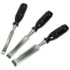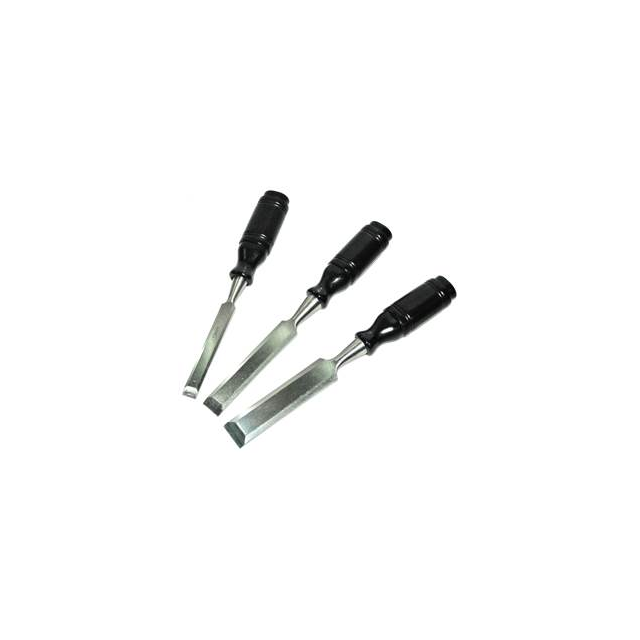 WOODWORKING CHISELS - Set of 3. A good quality set of 3 woodworking chisels - one each 13mm, 19mm and 25mm - featuring hardened steel blades set into strong and comfortable moulded plastic handles. |