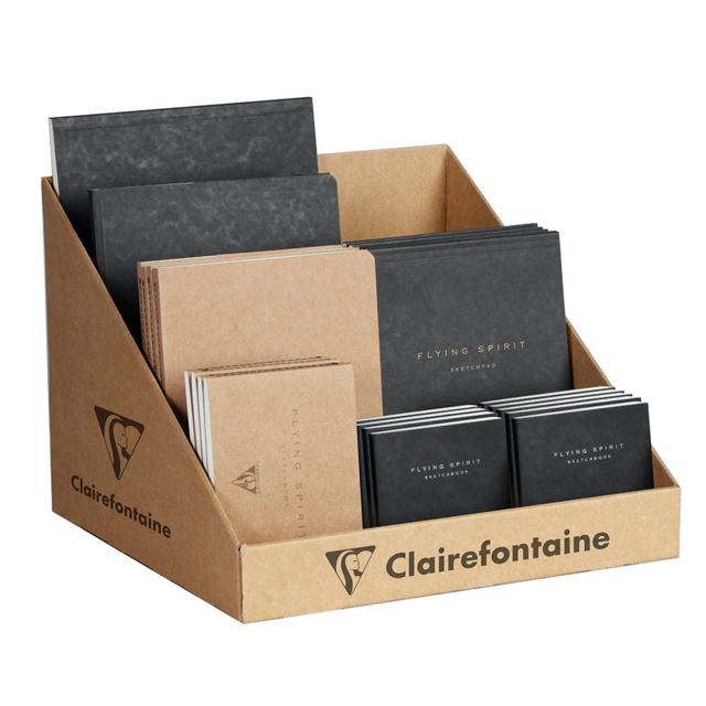 #CLAIREFONTAINE FLYING SPIRITx30 KRAFT DISPLAY. Contains 5 books each of Black covered Flying Spirit books in the sizes 19x25cm, 16x21cm, 10.5x10.5cm and A4 plus 5 books each of Kraft covered books in the sizes 16x21cm and A6. |