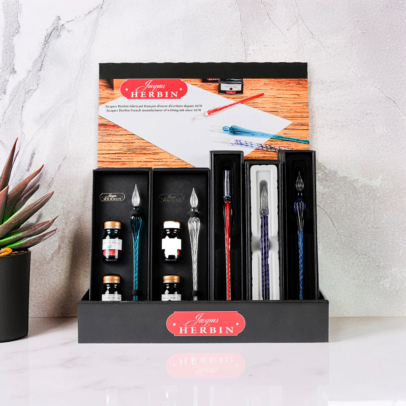Merchandising options from Jacques Herbin to neatly showcase and display products.