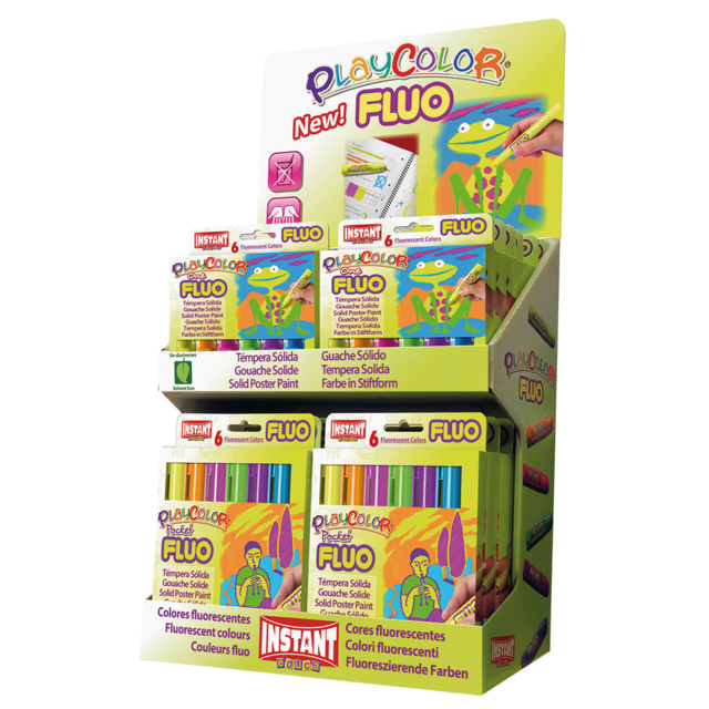 PLAYCOLOR FLUORESCENT DISPLAY. Display contains 6 boxes each of the 12 x 10gm and 12 x 5gm Fluorescent sets. |