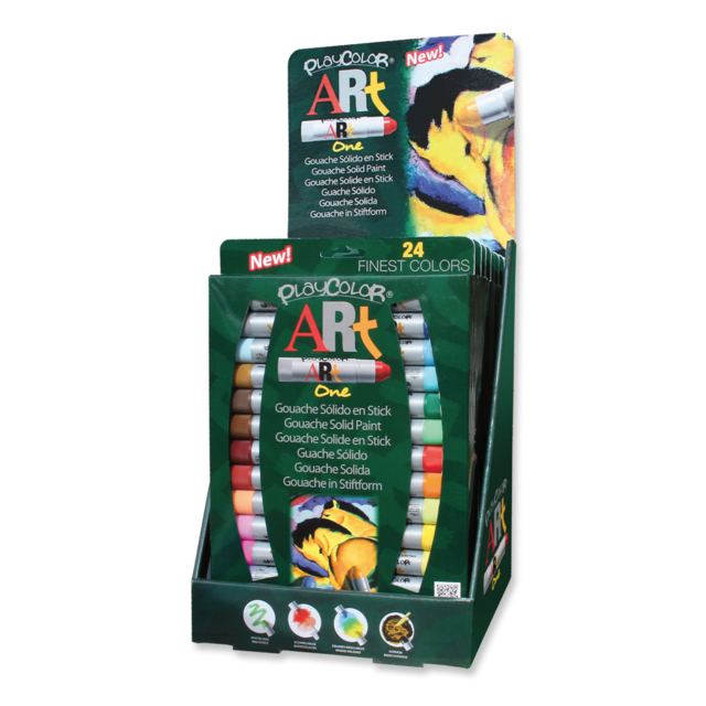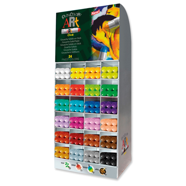 #ARTIST GOUACHE SINGLE COLOUR DISPLAY. Cardboard counter display supplied with 6 each of all 24 Playcolor Artist Gouache sticks. |