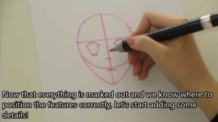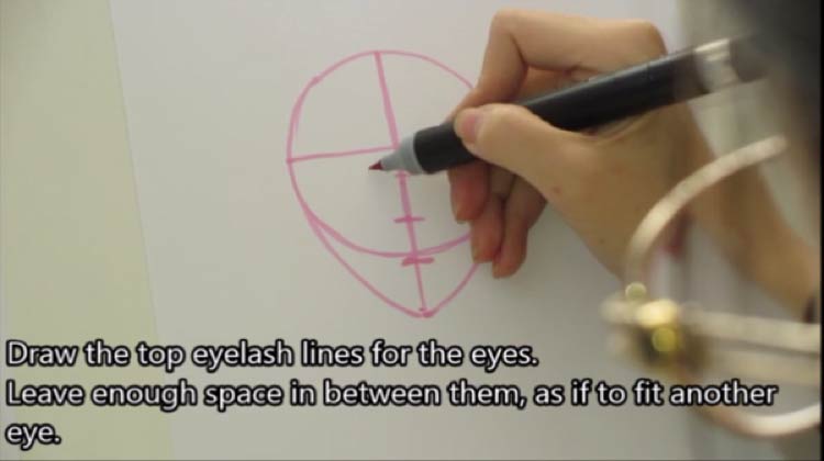 NOTE: To help with how big to make the eyes, the eye guideline from ear to ear should be roughly five eyes wide. This means that your eyes should have an eye’s length that separates them in the middle.
