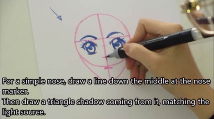 Manga noses are simple shapes with the bottom always at the nose line, but you can experiment with as complex a shape as you want. Noses in Manga can be shaded but it’s optional. As are nostrils. Do what you think looks best for your character.